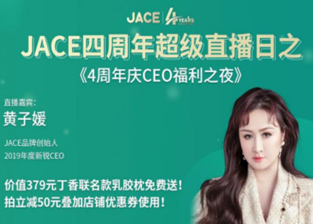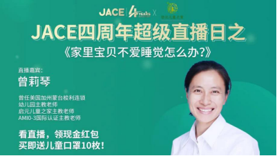 超级直播周是JACE四周年庆的活动高潮。在3月19日-3月25日期间,JACE直播三天,狂欢不断,针对参与直播间的用户推出了力度超前的下单立减50、买即送儿童口罩、现金红包雨以及爆款产品直送等优惠活动。同时,JACE分别邀请了三位专家来到直播间,针对家庭育儿、失眠抑郁、睡前瑜伽、如何哄娃、如何辨别乳胶产品等话题,和用户们分享交流,打造更有温度的专业母婴品牌。