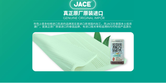 作为来自泰国的专业乳胶寝具品牌,JACE的品牌实力不言而喻。公司在泰国素叻他尼拥有30万顷黄金地带橡胶林,只选用品质最高的“黄金十年”树龄的乳胶原液,并且在产地附近开设了自有的天然乳胶生产基地,确保采割下来的新鲜乳胶及时进入生产加工环节,从源头把控产品品质。