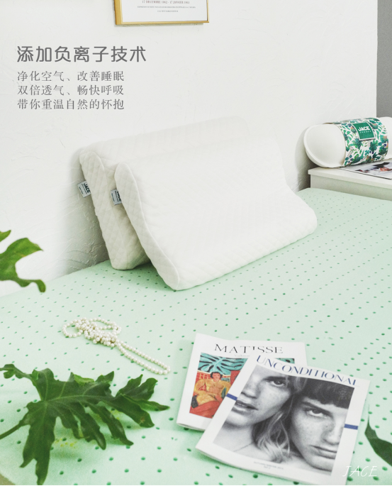 当下社会人均压力增大,睡眠成了紧绷之余的短暂放松期,人们对于寝具尤其是床垫舒适度的诉求尤为强烈。JACE负离子乳胶床垫采用第七代负离子技术,源用于泰国南部热带森林高含氧绿植原料,经过JACE国际材料分子实验室的有效提取注入天然乳胶床垫内,能有效提高卧室空气负氧离子成分,洁净空气。同时根据人体工学设计,利用不同大小气孔的密度调节人的受压重力,从而让身体与床垫有效贴合,分区释放压力,放松脊椎压力,改善颈椎酸痛和失眠现象。多方面硬核的亮点优势,使JACE成为众多消费者的首选。