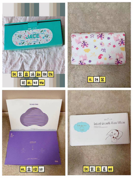 新世代的家长们在商品的挑选上愈来愈注重细节,除了材质与尺寸方面的功能性,外部包装的附加属性也更加引起了重视。因此枕头的面料,甚至包装也成为本次被测评的一个重要维度。