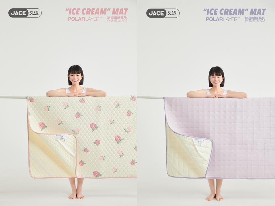 而乳胶凉垫作为JACE一直以来的主推单品,也在23年春夏进行了全方位升级。除“Polar Layer”科技凉感面料的更新迭代,Q-max凉感值达到0.34-0.38,产品外观更是在国际审美设计师加持下推出新色新花型,清新印花及配色席卷夏日家居新风尚。