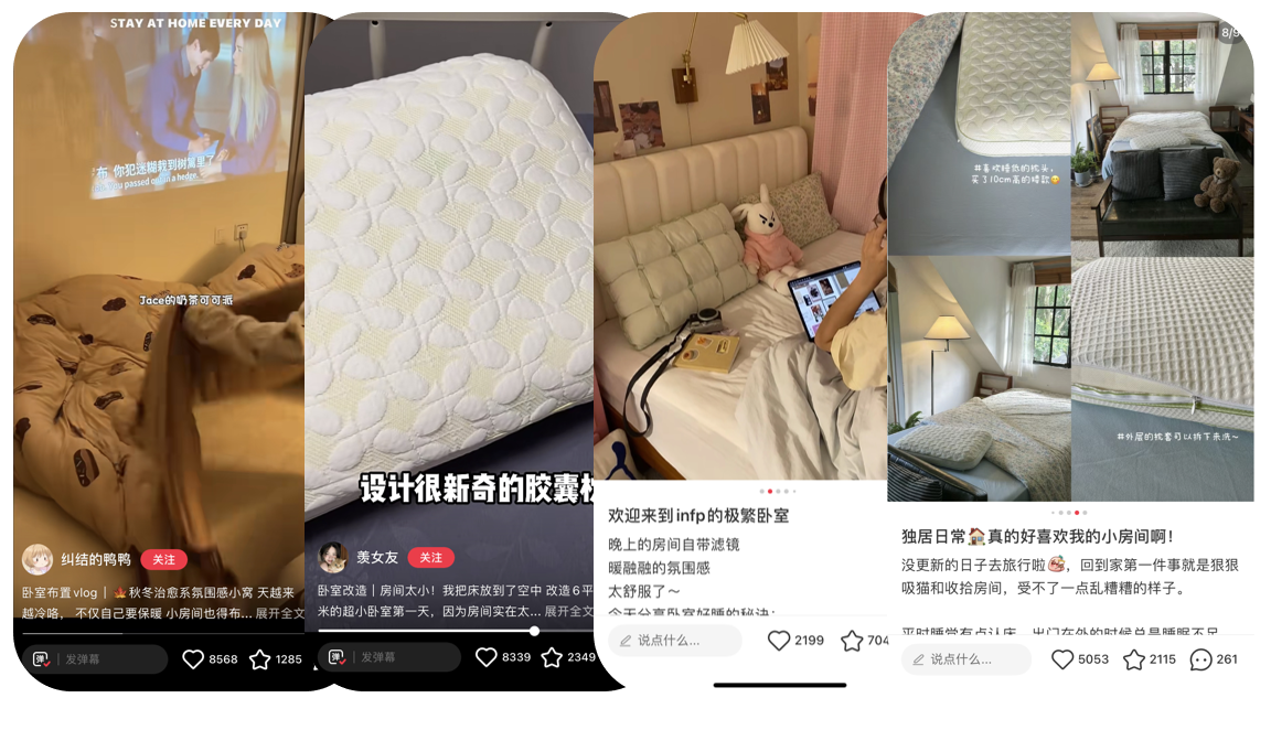 除去站内销售平台的布局外,JACE也持续在小红书、微博多个社交平台进行多元化的内容种草,其中小红书作为主阵地,从氛围感的寝卧空间软植入到场景化的真实分享,借助KOL及KOC之力带动JACE秋冬新品触达更多消费者。并配合精准投放挖掘潜力市场,拓展产品触达人群,新品一经面世,便获得千万级曝光。